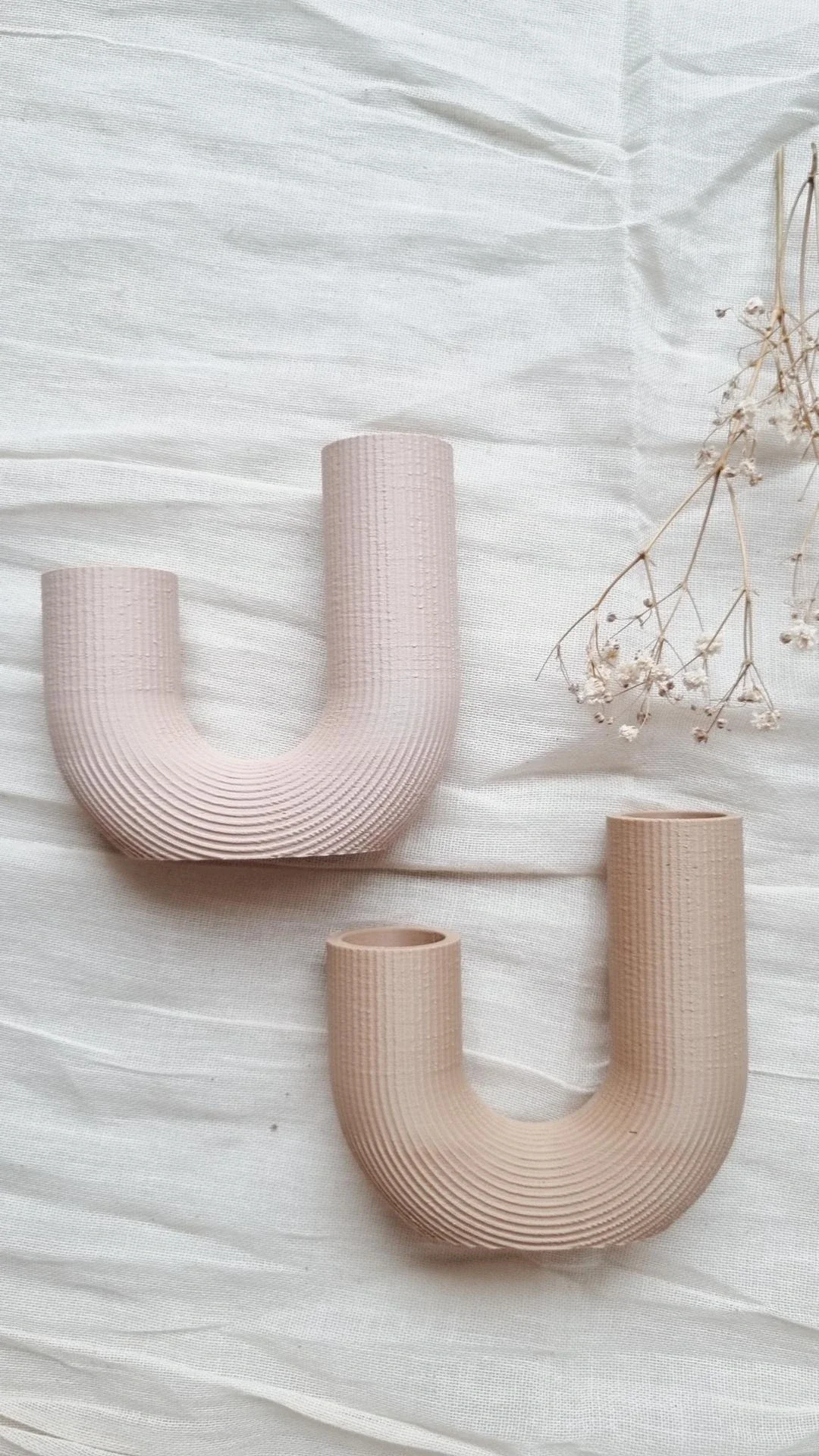 - Kandelaar in kleur sand met 2 dinerkaarsen in bordeaux kleur.