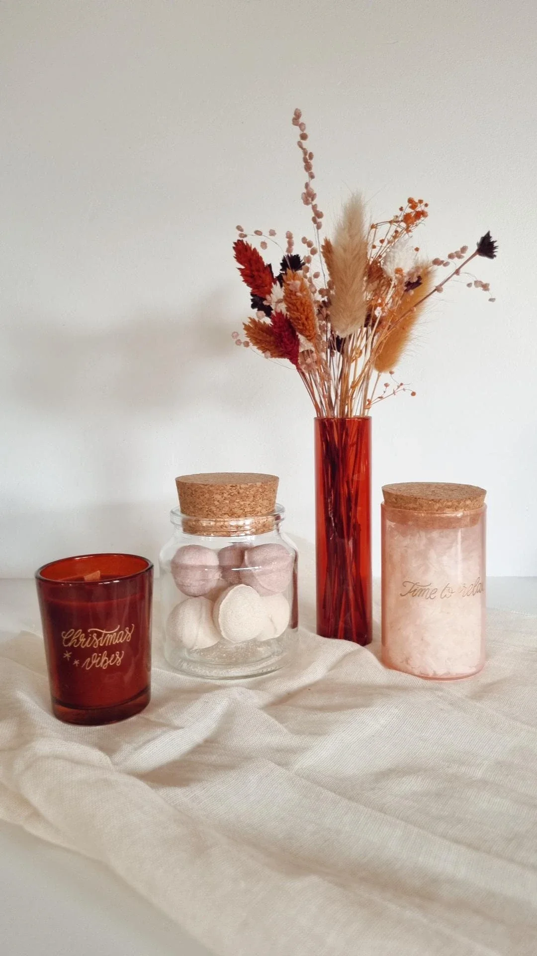 - Mini burgundy kaarsje 6x5cm (een heerlijke geur van grapefruit & bergamont) + gravure.