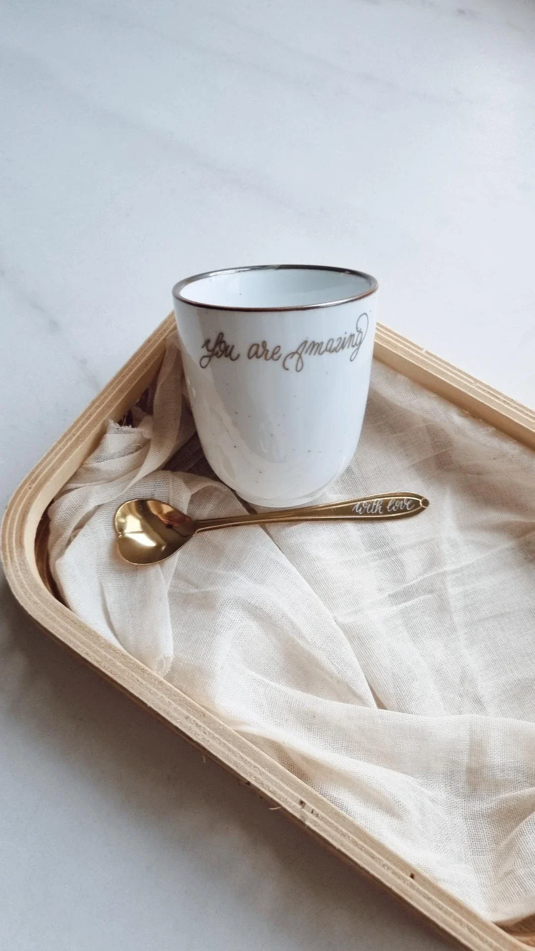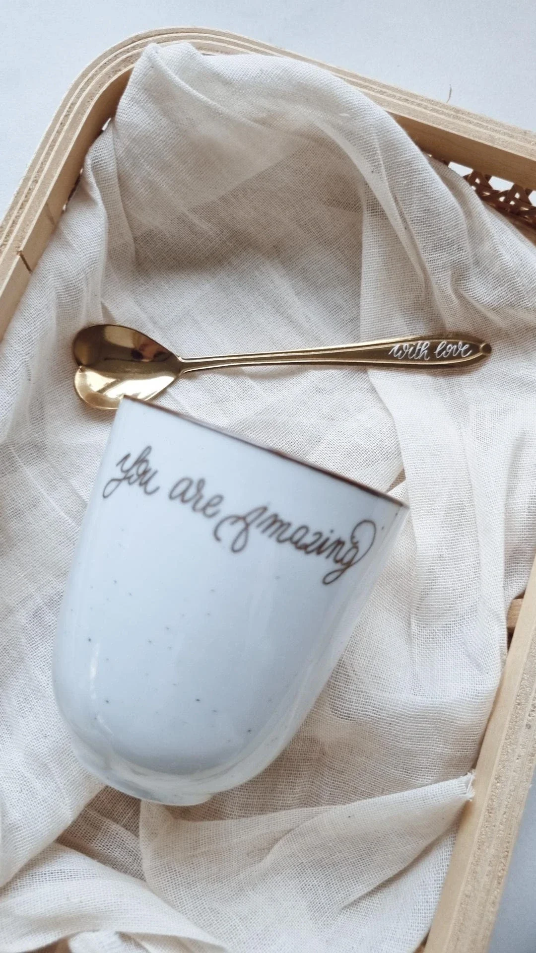 - Mok met reeds een gravure op 'You are amazing'.