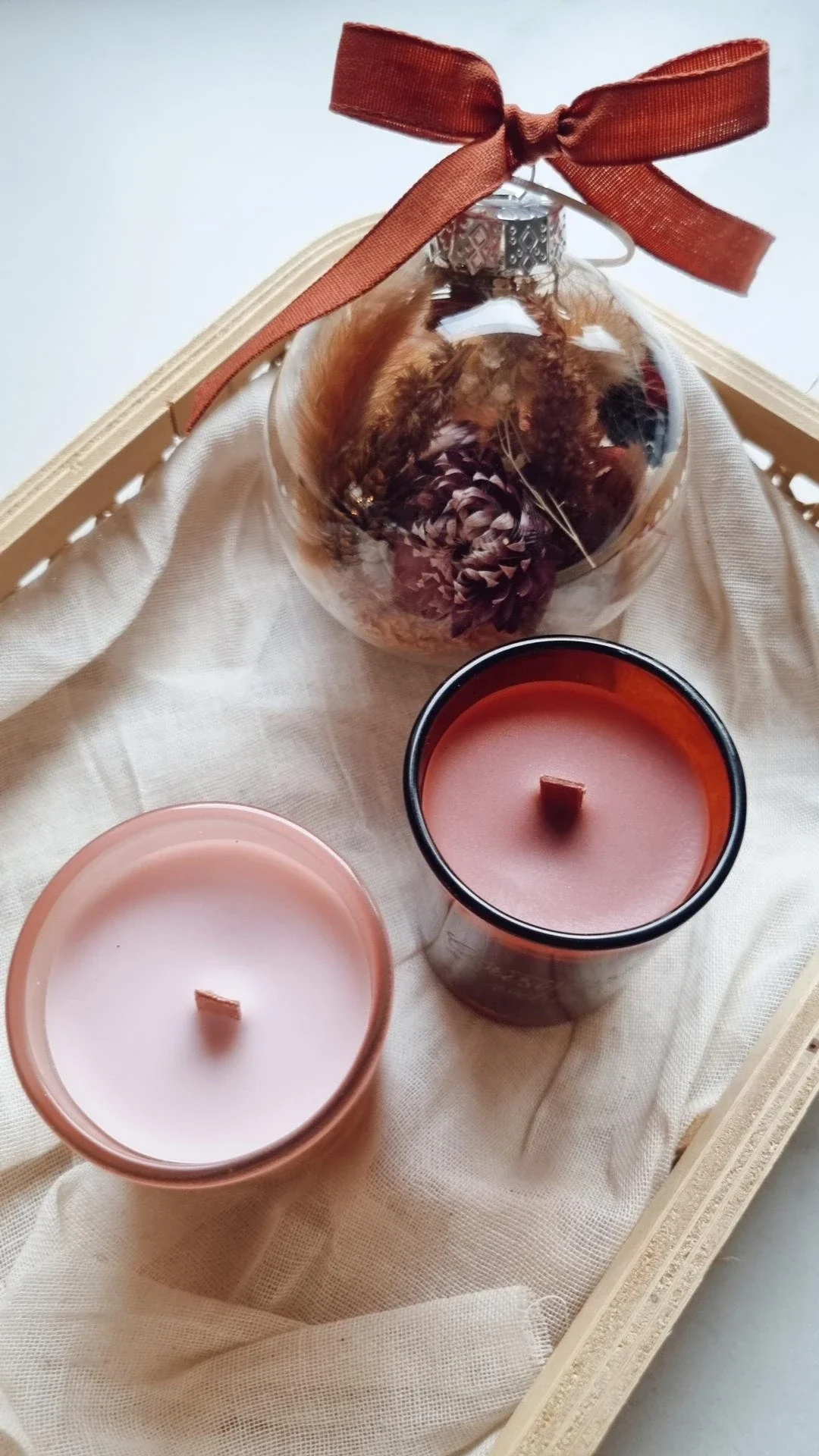 - Geparfumeerde kaars: een subtiele frisse geur van grapefruit en bergamont of de frisse geur van magnolia.