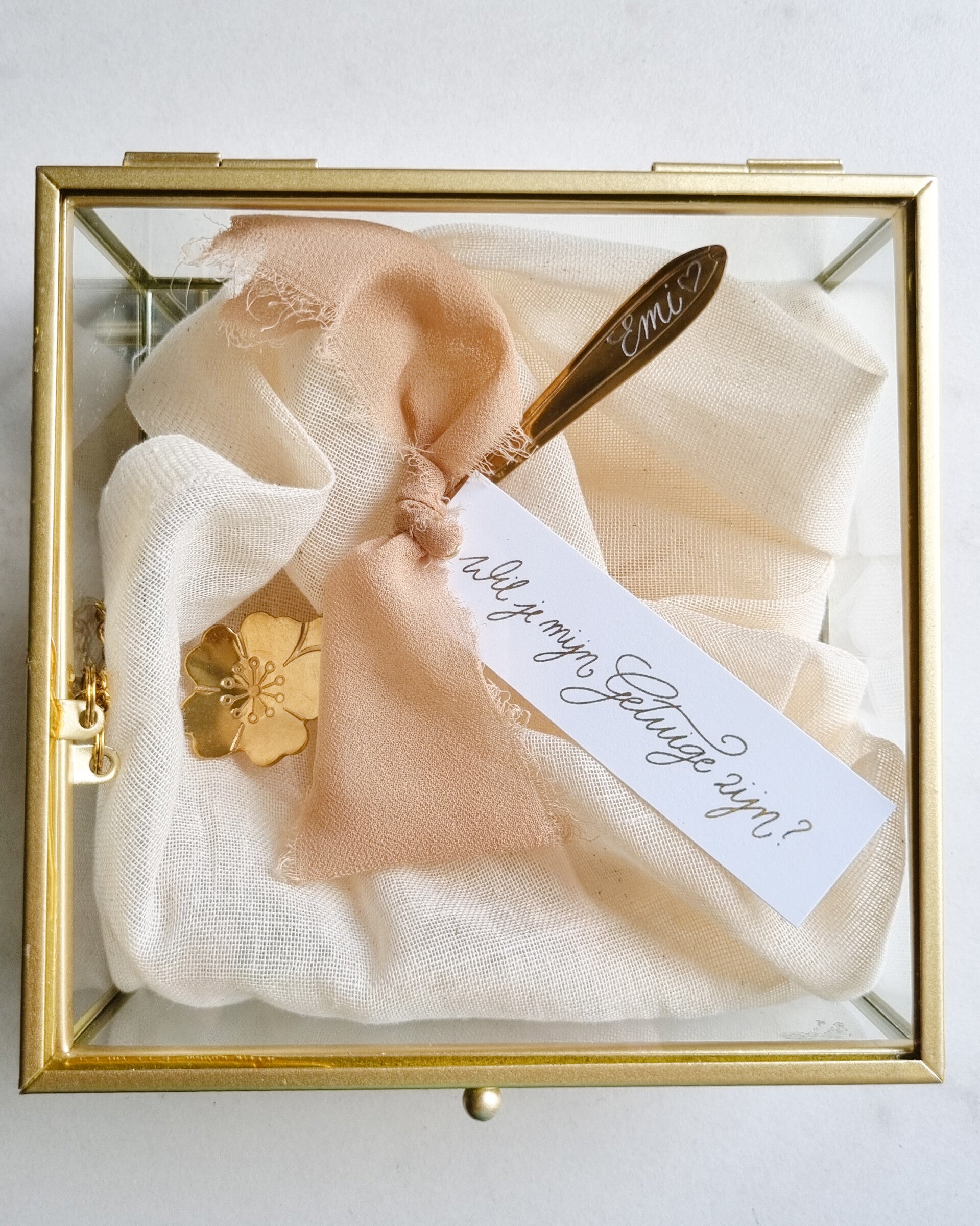 - Voeg een extra boeketje droogbloemen toe en verpak dit samen in een memorybox. Je hebt meteen een prachtig geschenk om mee uit te pakken.