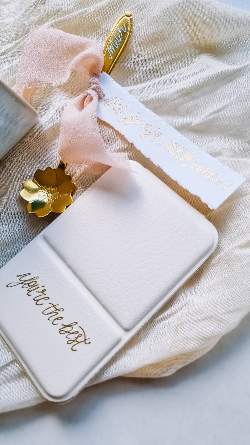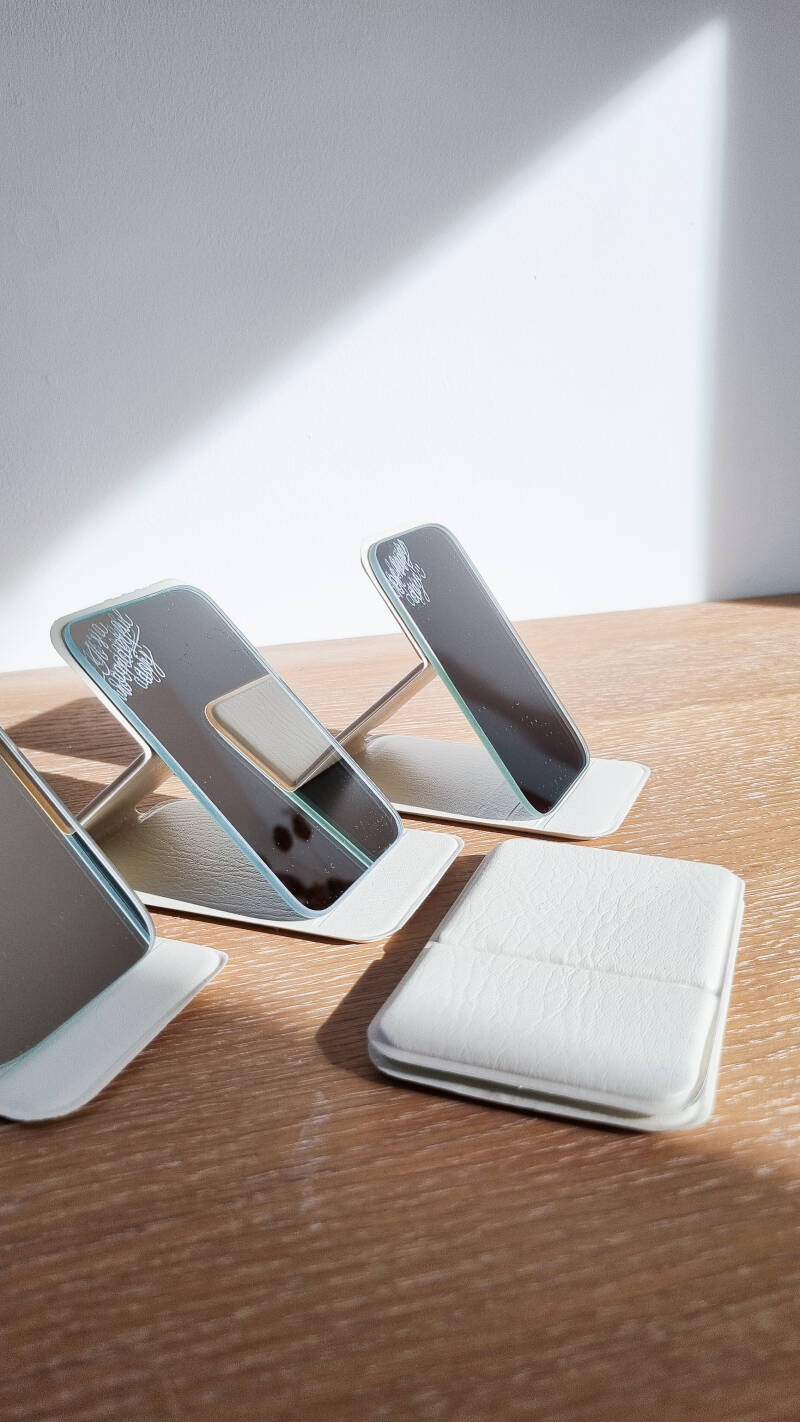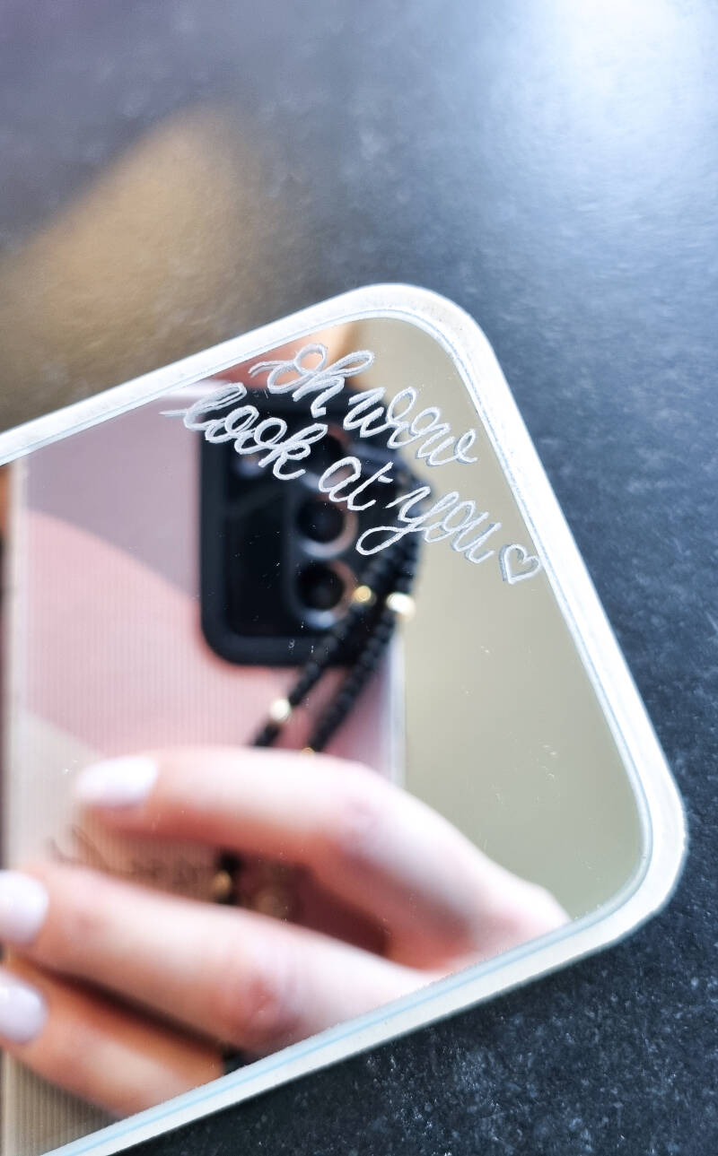 - Handtasspiegeltje (incl. gravure op de spiegel + optie hot foil op de flap),