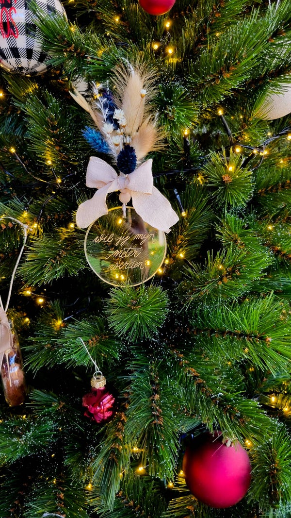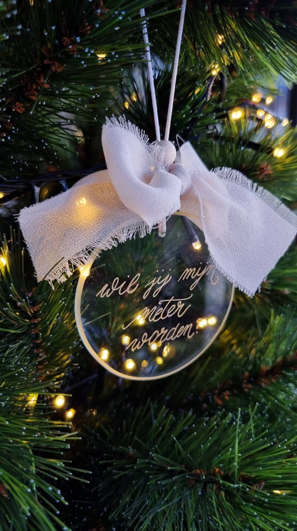 Kies zelf de gravure. Deze wordt met de hand aangebracht op het glazen ornament.