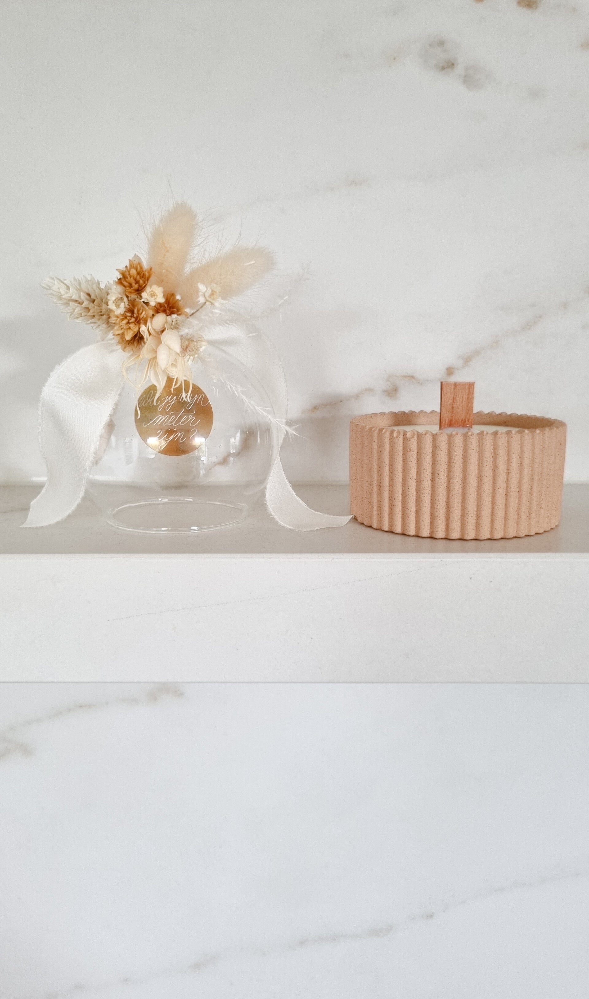Deze luxe kerstbal wordt vergezeld van een handgegoten kaars in een terracotta pot.