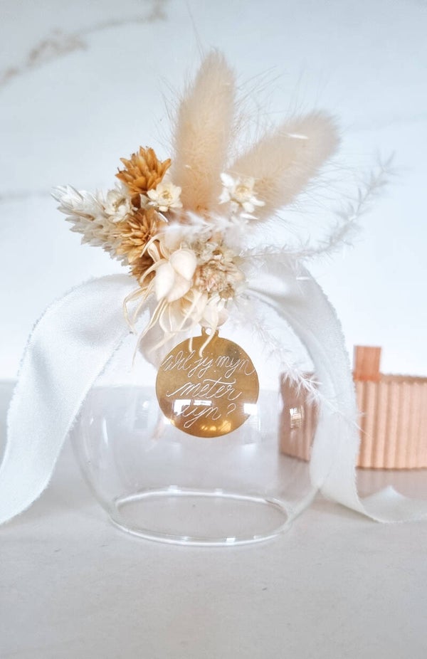 Een gepersonaliseerde kerstbal is het ultieme eindejaarsgeschenk. Hét perfecte cadeau om iemand te verrassen met een een leuke vraag (meter, peter, getuige, bruidsmeisje,...).