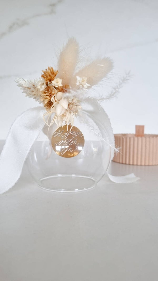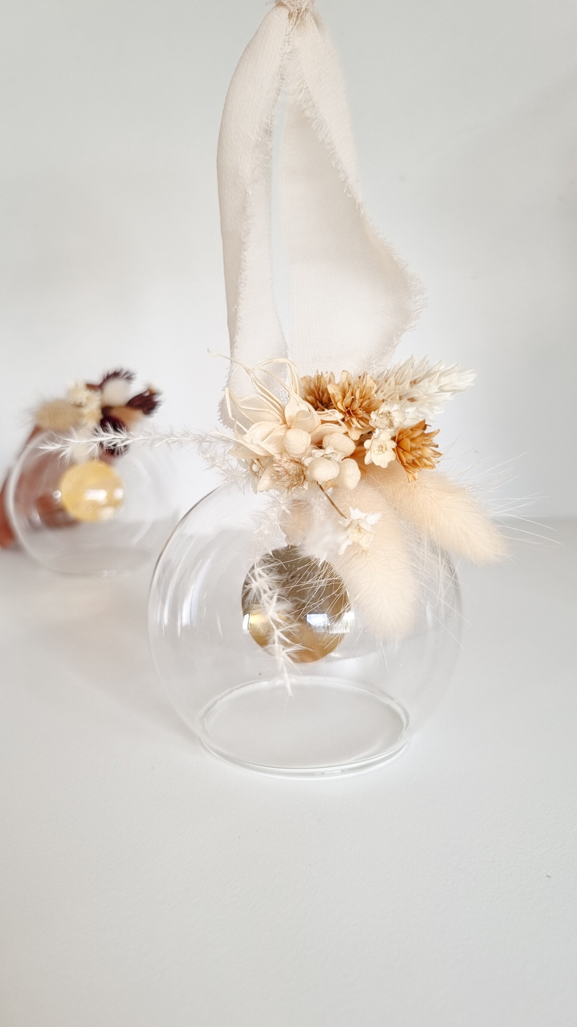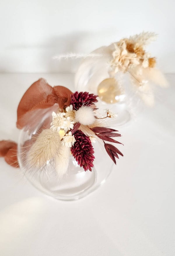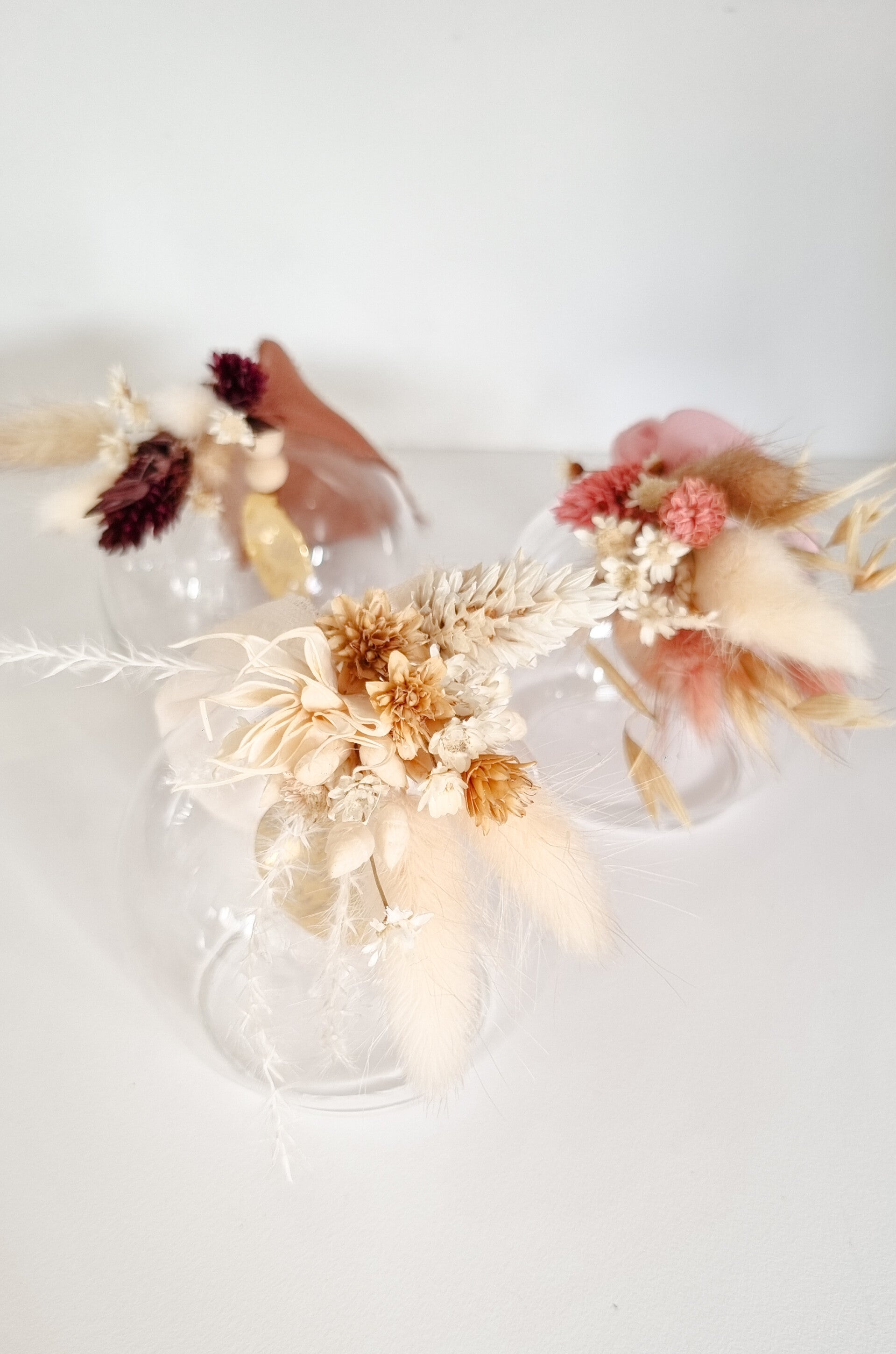 Voer hier het kleurenpalet in voor de droogbloemen die je in de kerstbal wenst.