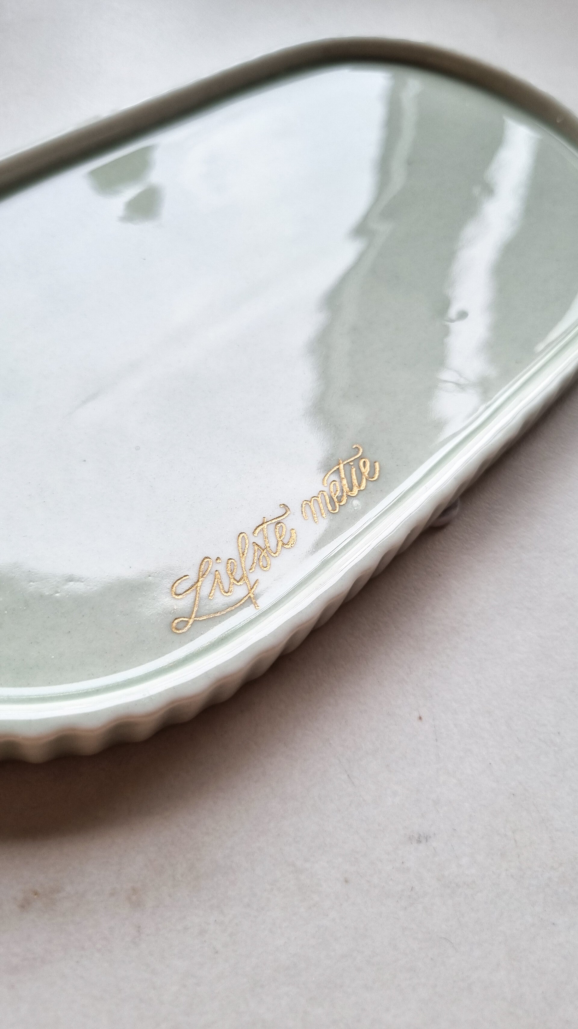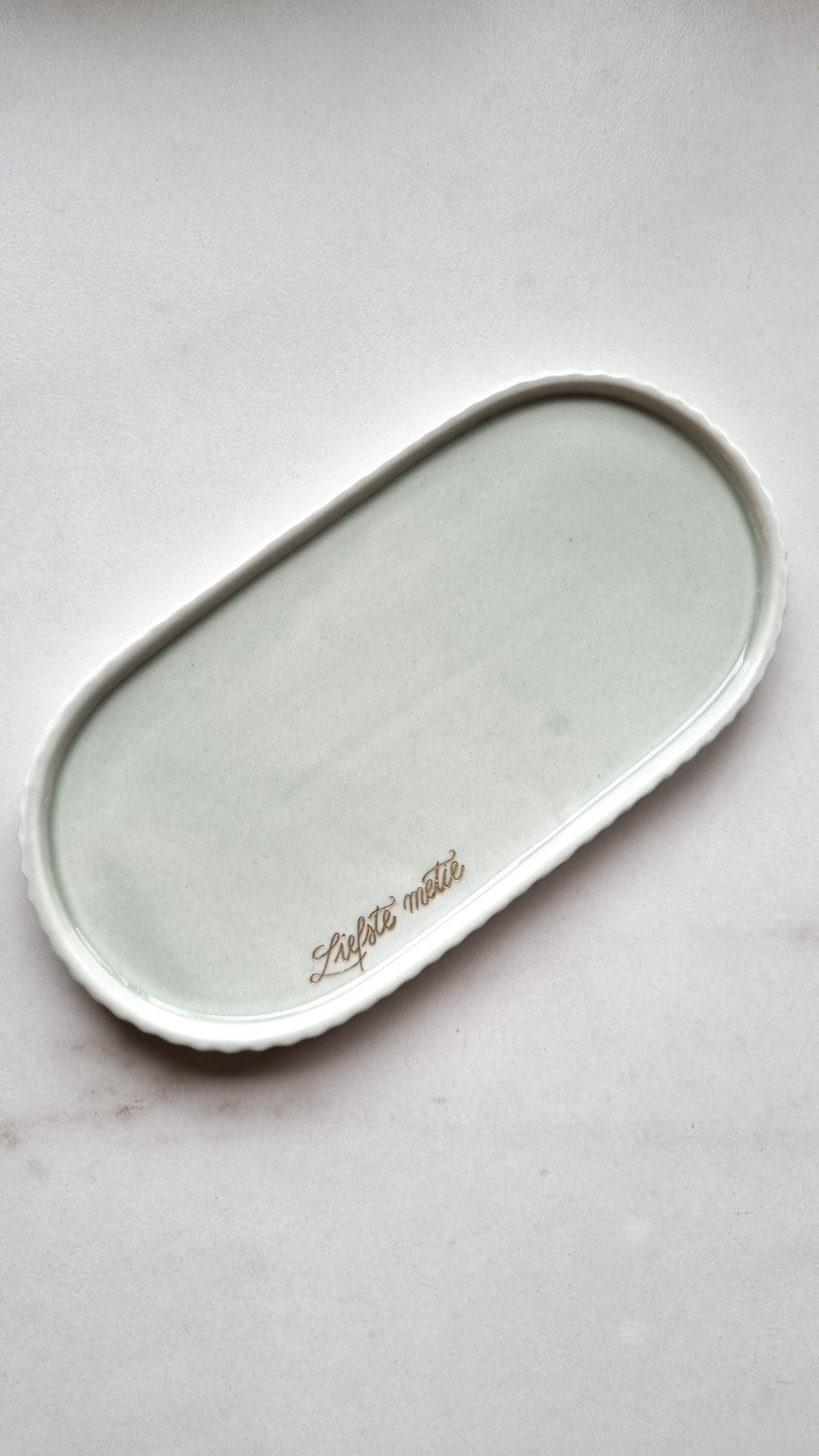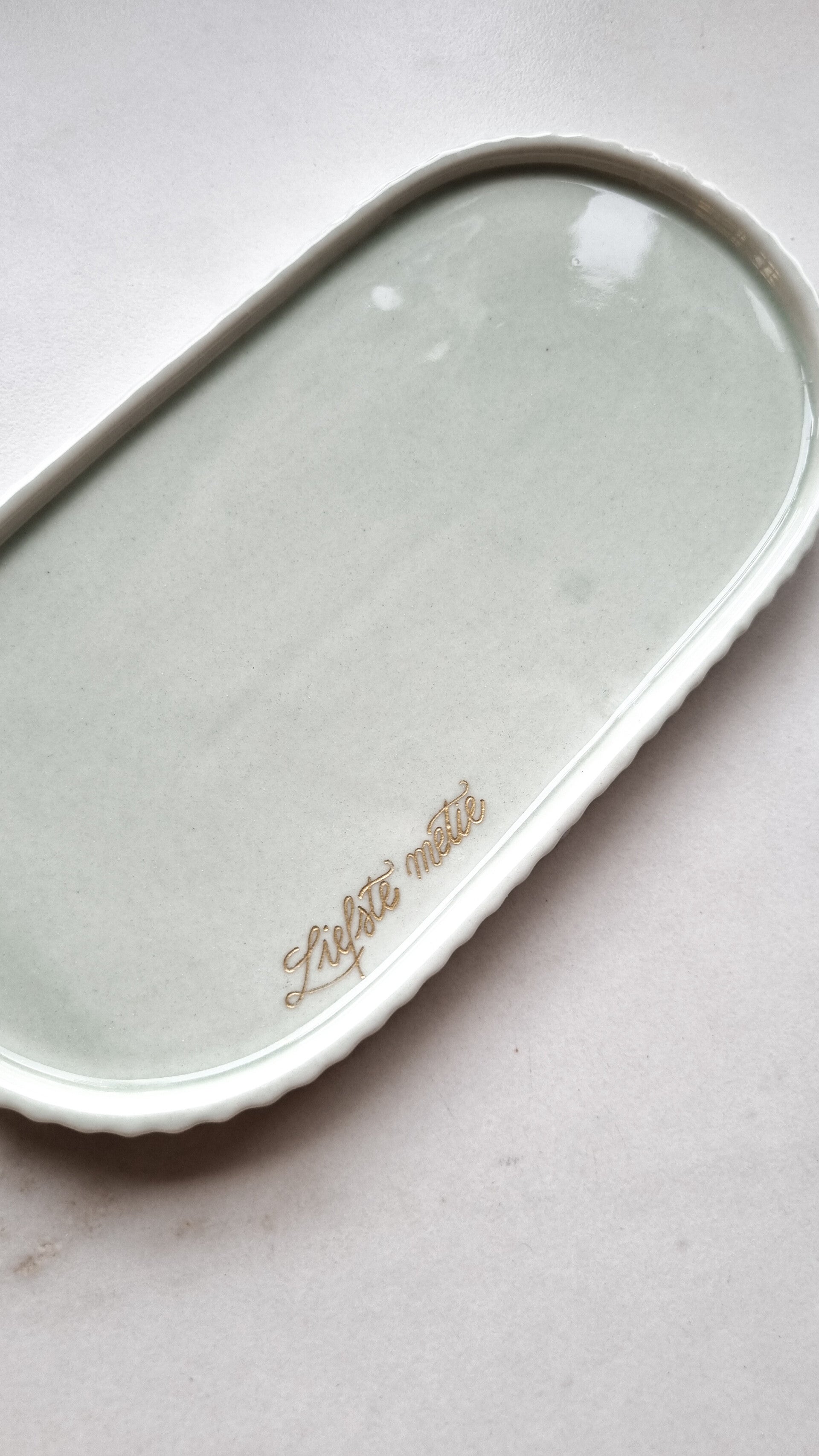Een ovaal bord of dienblad, zoals je het zelf noemt.