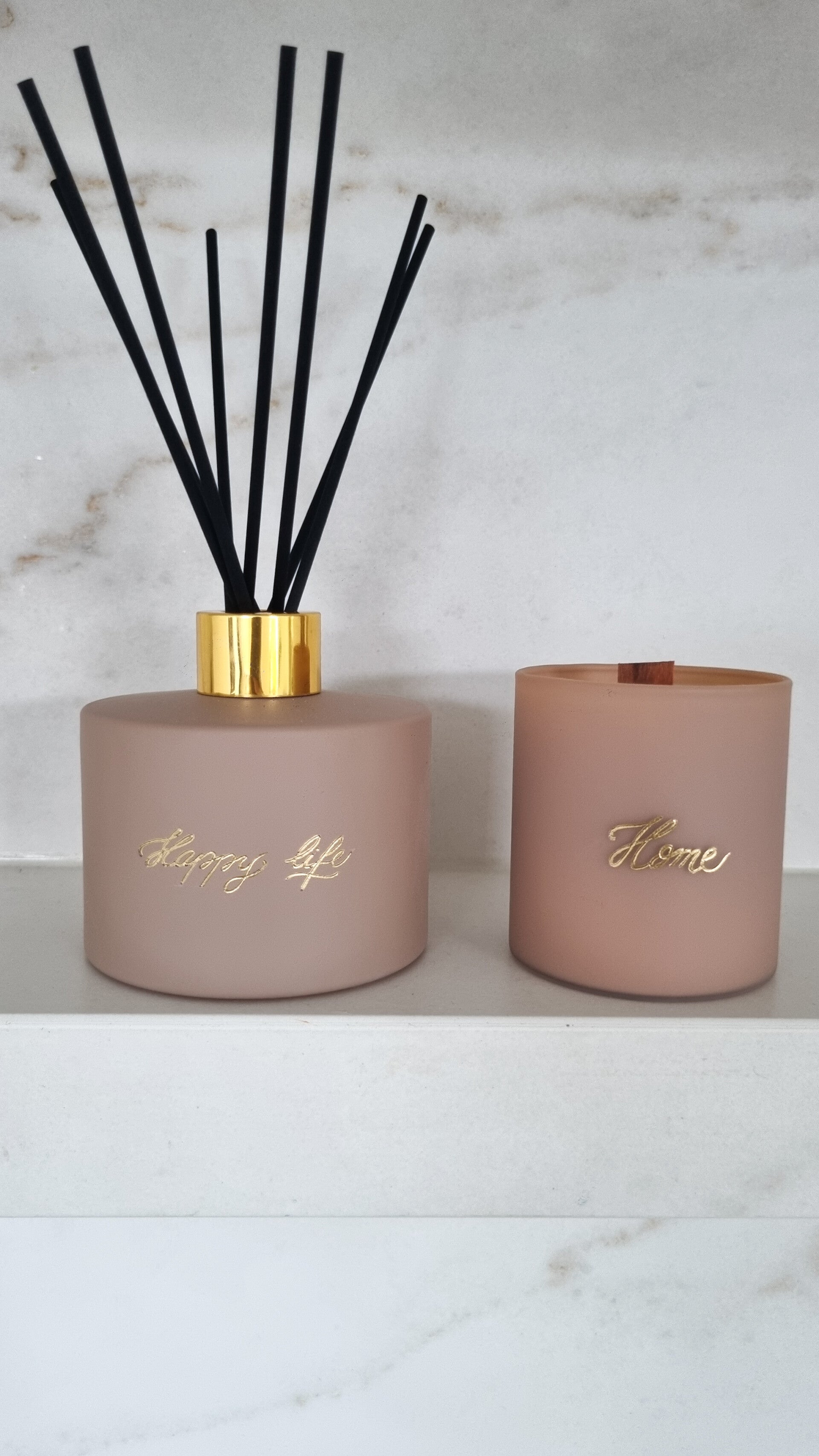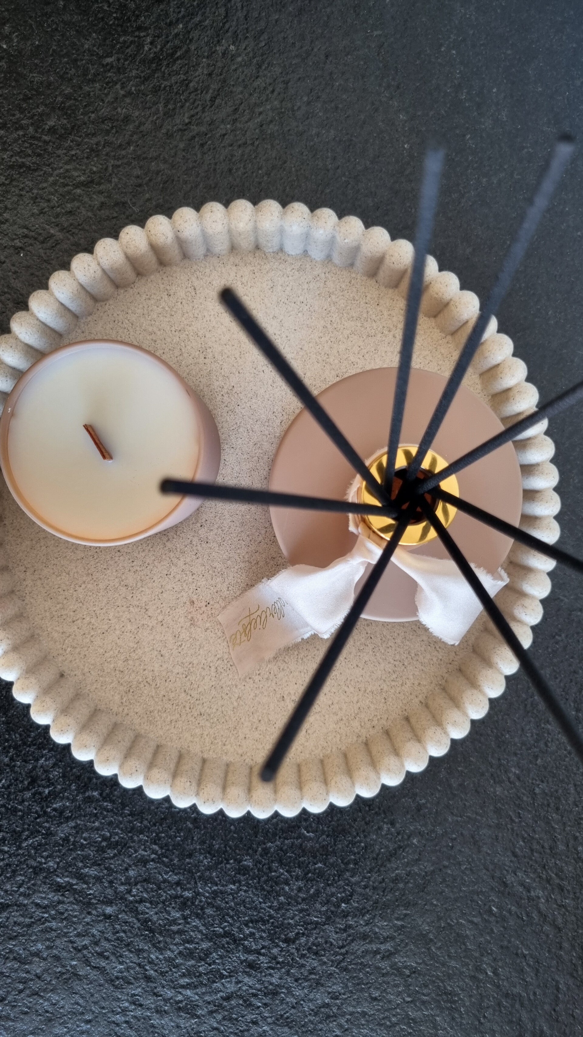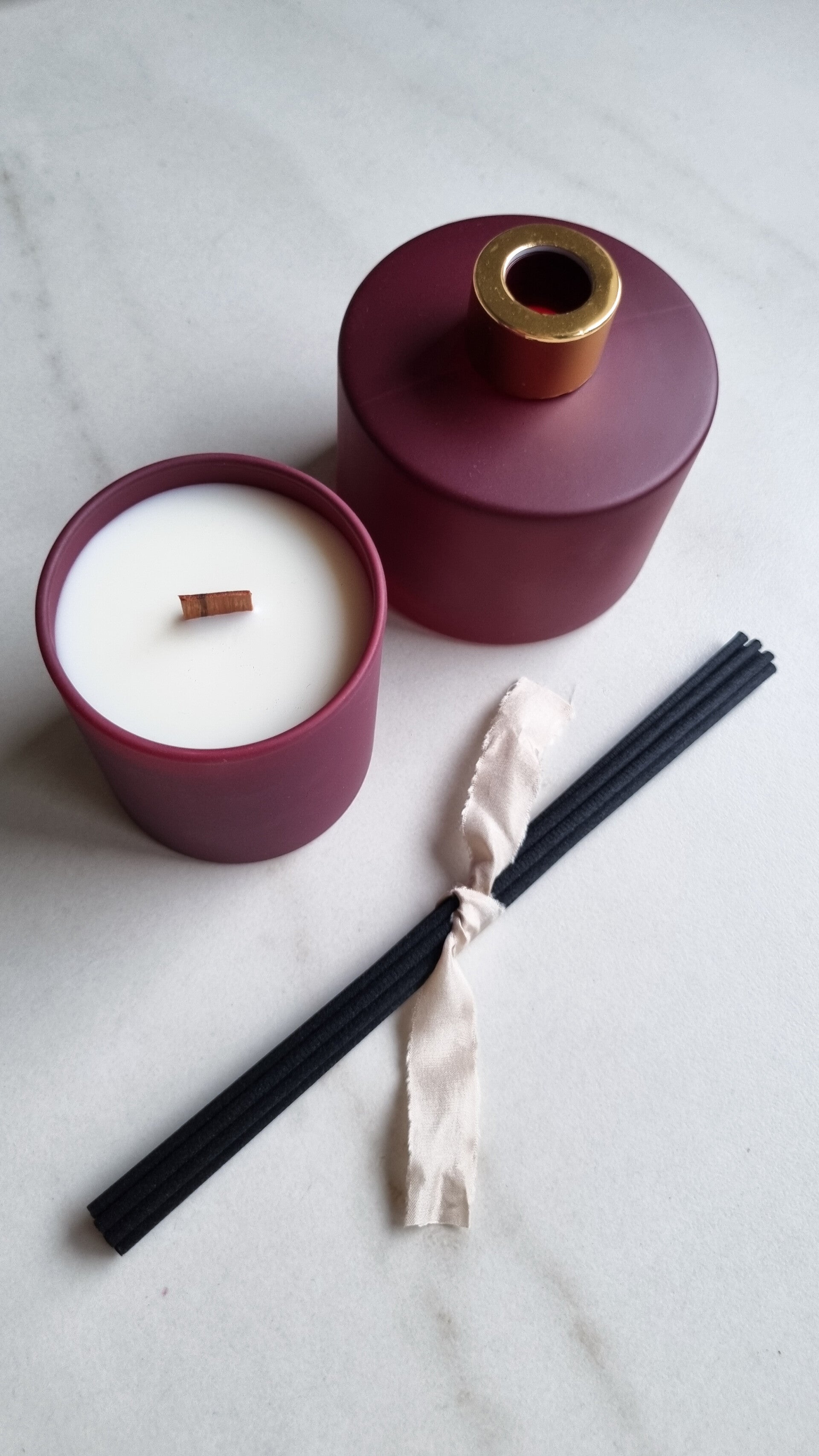 Een set interieurparfum met een geurkaars.