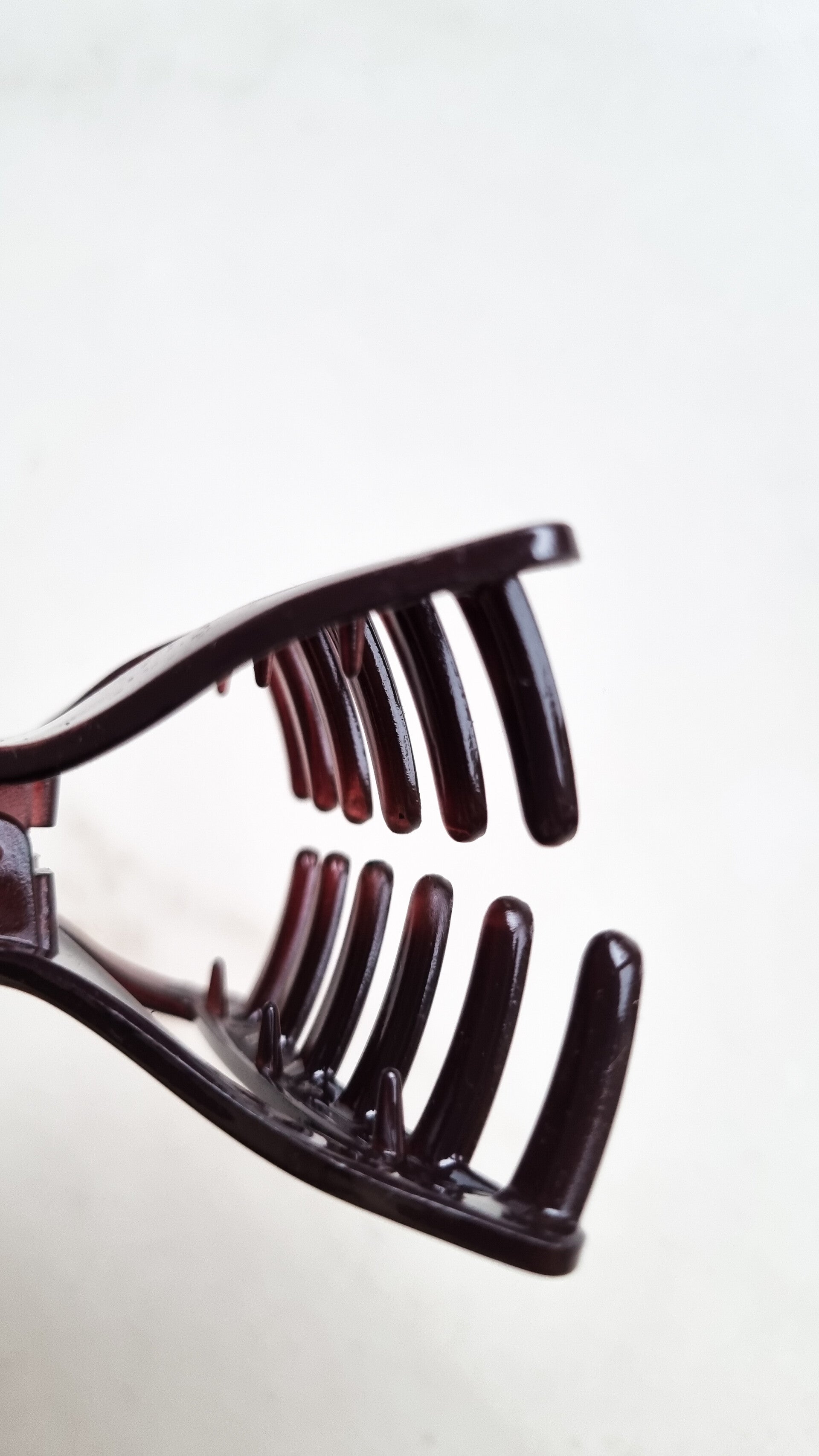 - De haarclip bevat aan de binnenzijde tandjes die zorgen voor extra grip in het haar.