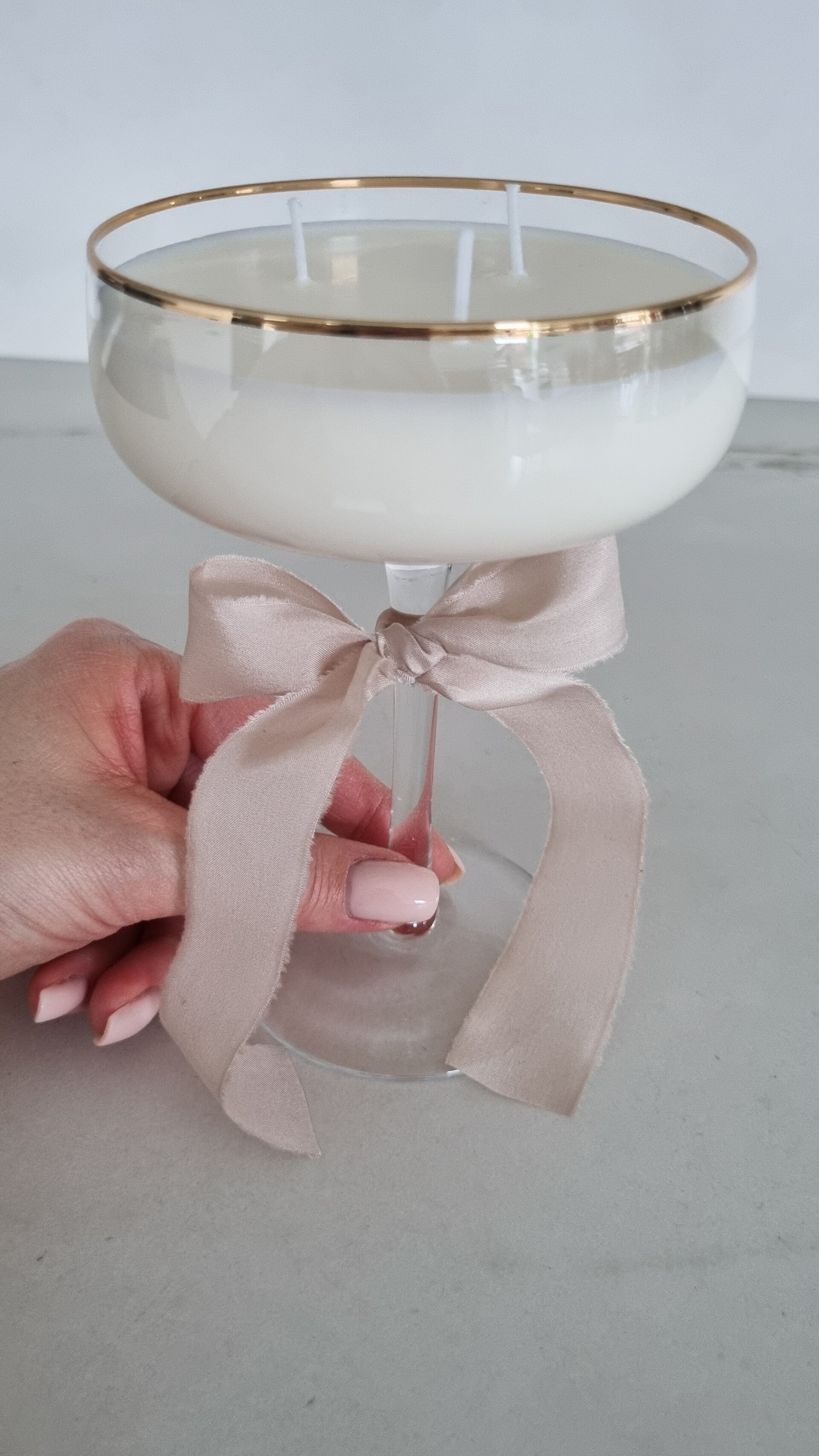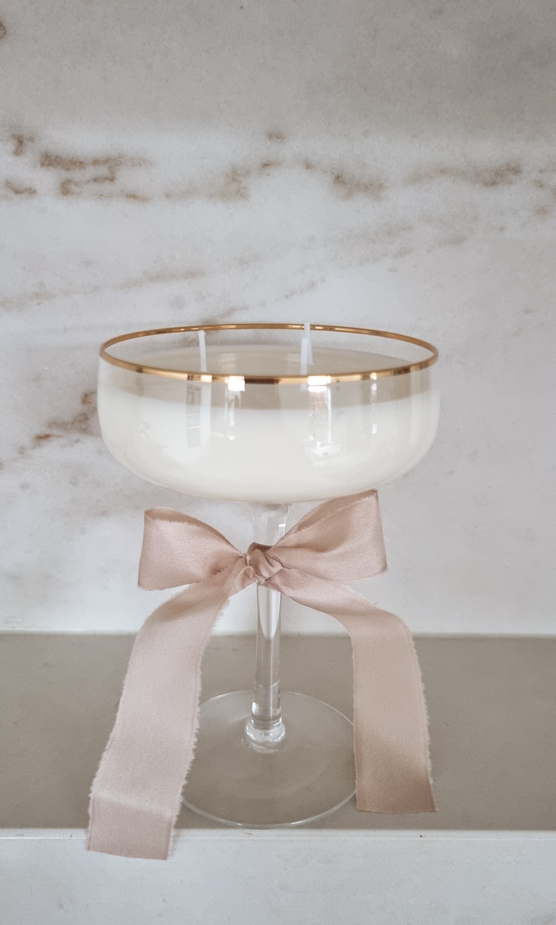Verras een geliefde, meter, mama, vriendin,... met een unieke kaars in een Coupe Champagneglas of geef dit glas cadeau als huwelijksgeschenk, geboortecadeautje of voor een verjaardag of ander feest.