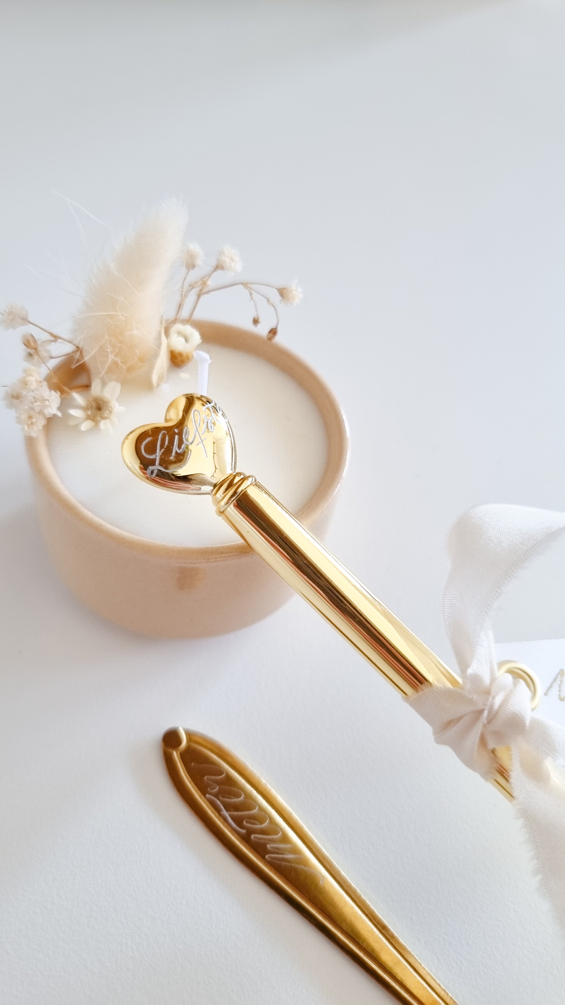 - Gouden lepeltje (hartje) met gravure.