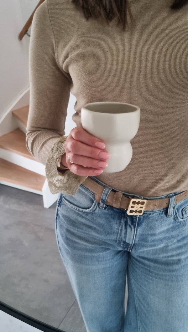 Een super cosy mok. Perfect voor een koffie, thee, lekkere chocolademelk. Kortom, serveer er jouw favoriete hot/ cold drink in.