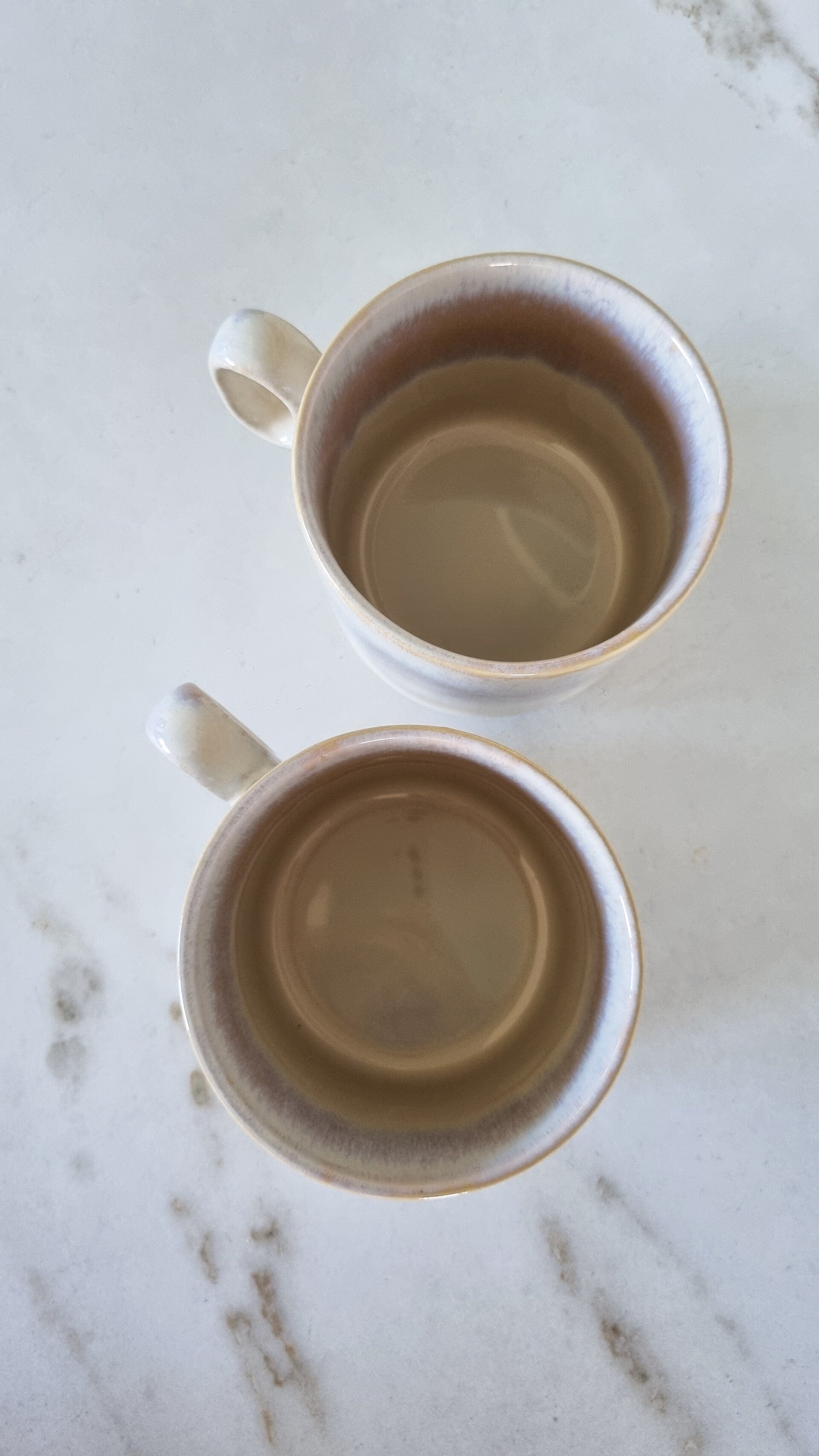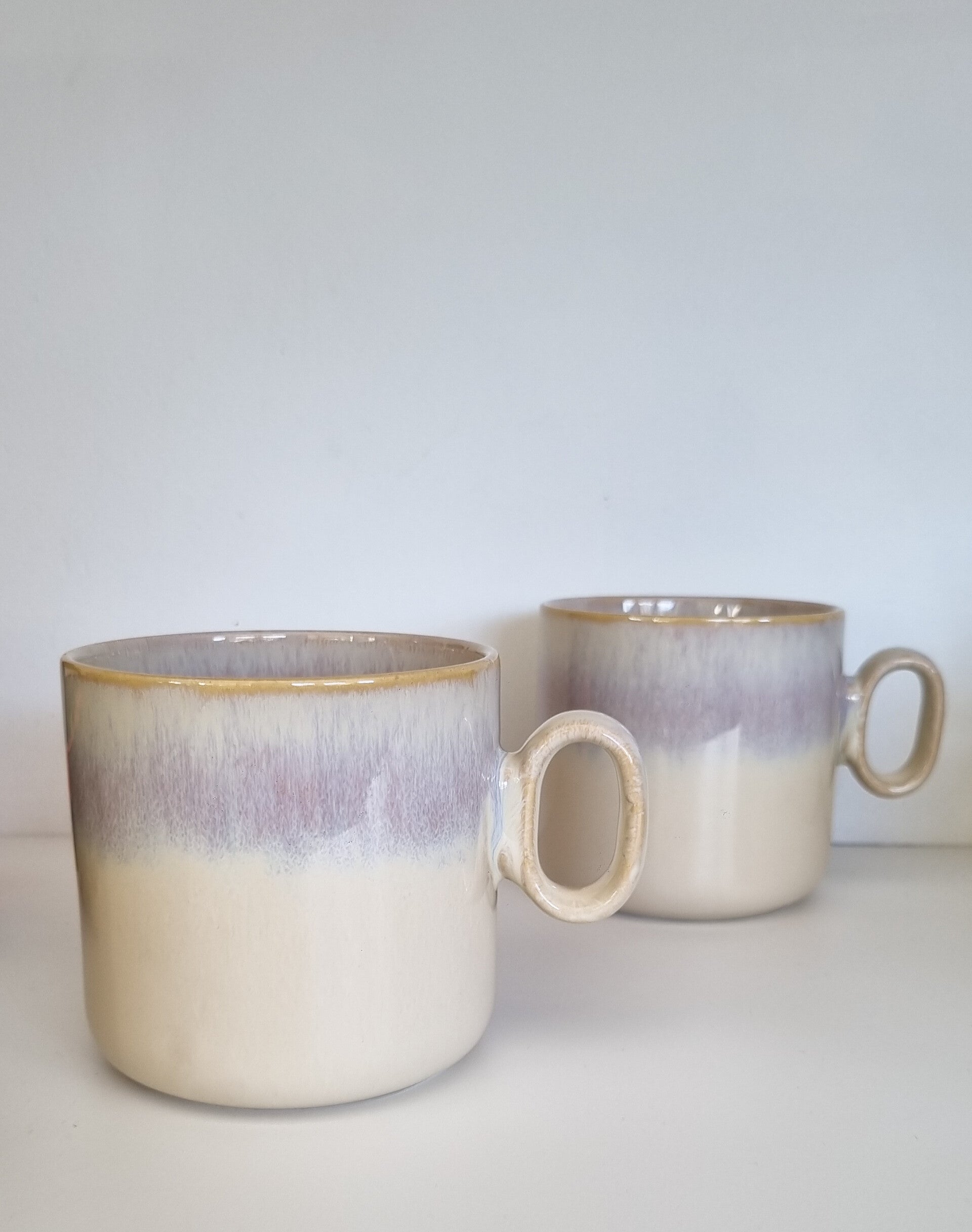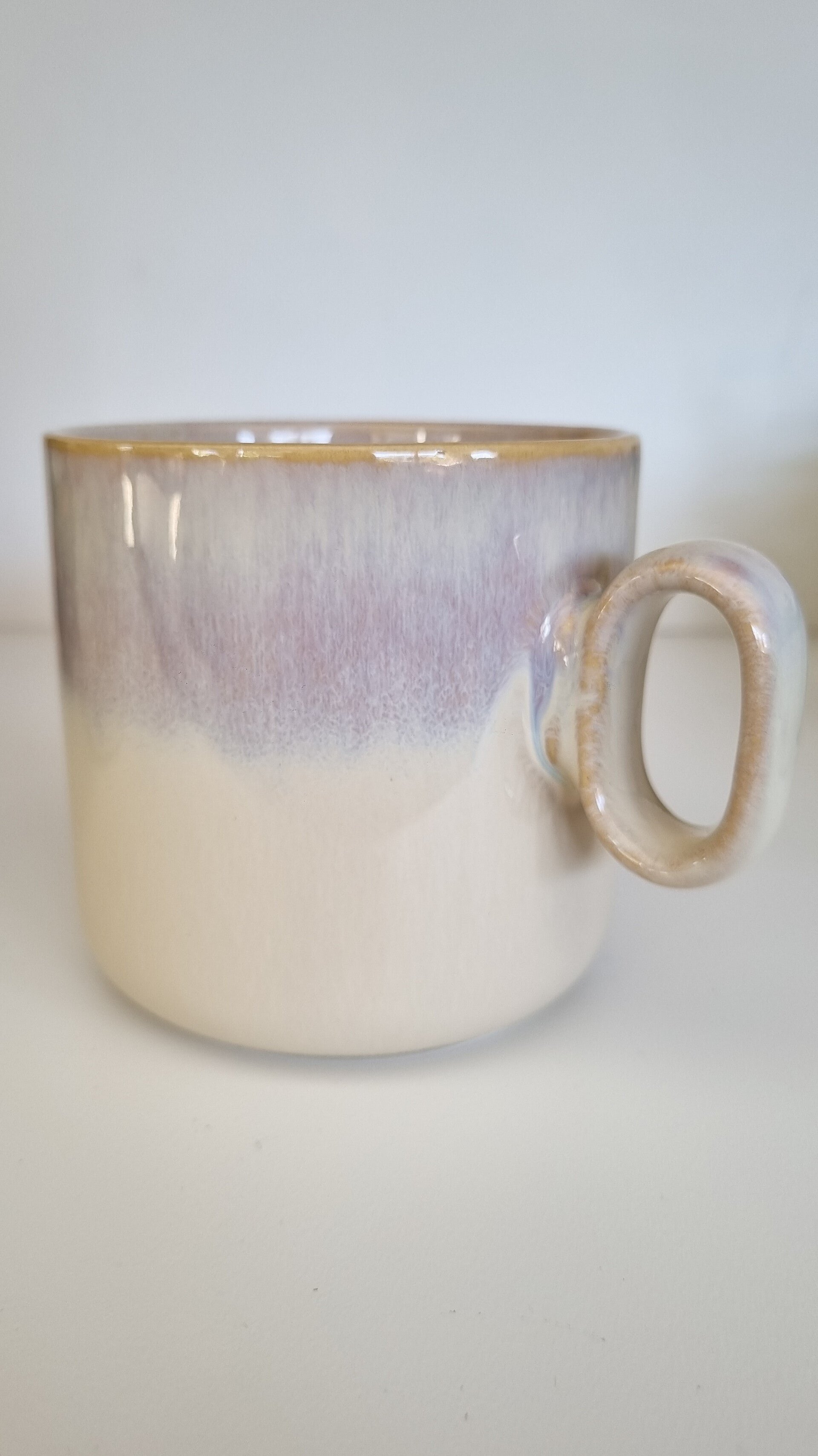 - Kleur: beige glazuur met een zacht wave effect in passende tinten.