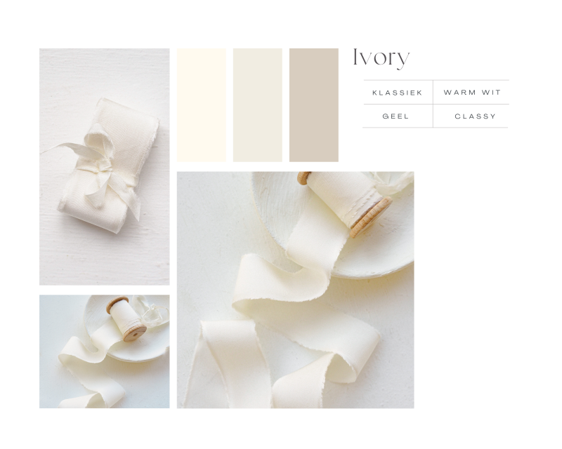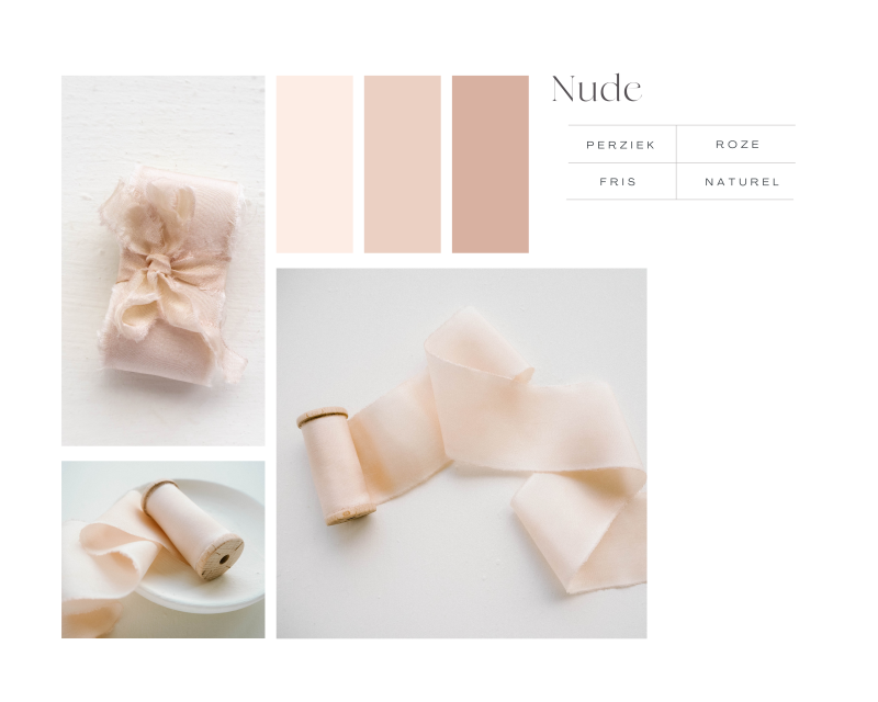 Ontdek de verschillende kleuren zijden linten. Deze worden gebruikt om de vows mee af te werken.