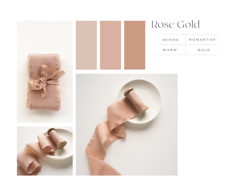 Ontdek de verschillende kleuren zijden linten. Deze worden gebruikt om de labeltjes met hot foil mee af te werken.